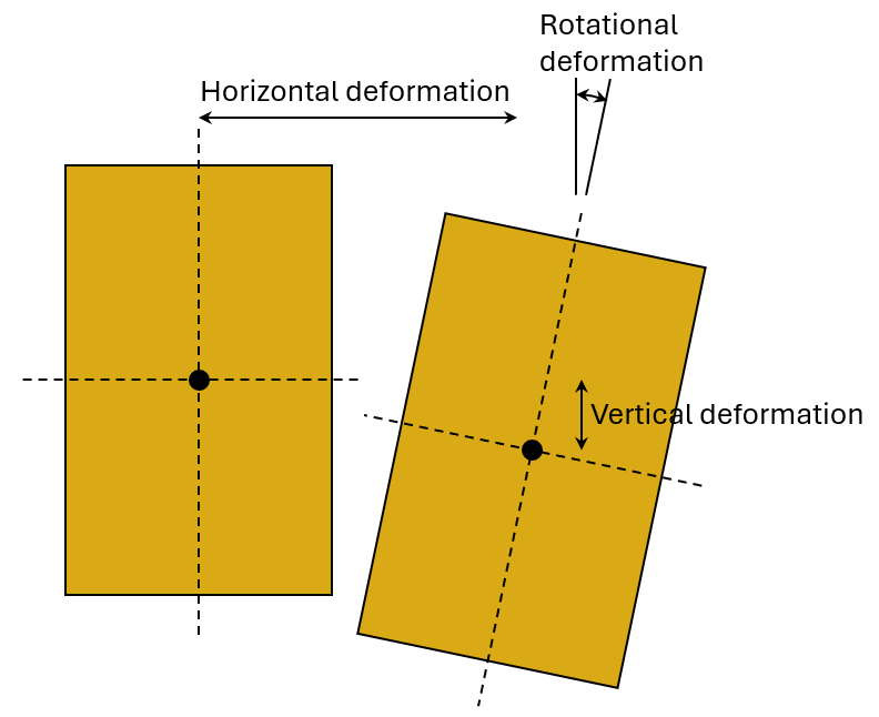 At the same time, the tension zone of the cross-section tends to remain almost undeformed. This results in a rotational and lateral deformation of the beam like in the following picture.